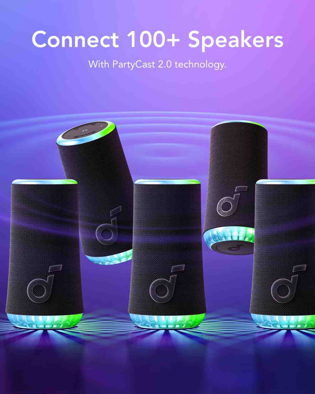 یکی از ویژگیهای شاخص این مدل، نورپردازی هماهنگ با موسیقی است. حلقهی نوری RGB اطراف اسپیکر بهصورت پویا با ریتم آهنگ هماهنگ میشود و میتوان از طریق اپلیکیشن Soundcore الگوها، رنگها و شدت نور را تغییر داد. چند حالت مختلف نور مانند Party Mode، Pulse Mode و Ambient Mode برای موقعیتهای گوناگون در دسترس هستند. این قابلیت به Glow ظاهری منحصربهفرد داده و آن را به گزینهای مناسب برای دورهمیها و فضاهای شبانه تبدیل کرده است.