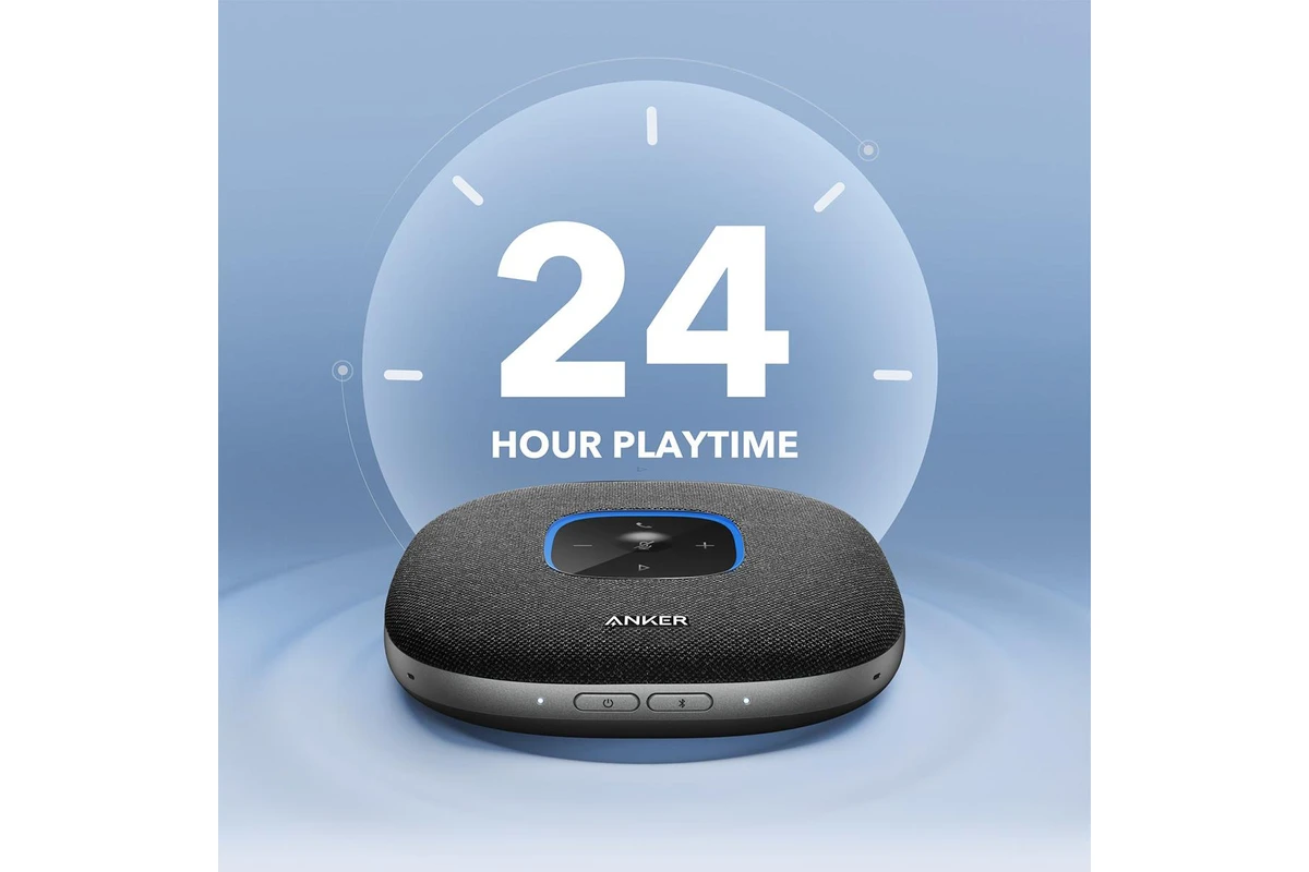 باتری داخلی این اسپیکر با ظرفیت ۶۷۰۰ میلیآمپر ساعت، امکان ۲۴ ساعت مکالمه پیوسته را فراهم میکند. این ویژگی برای جلسات طولانی یا استفاده در سفرهای کاری بسیار مناسب است.