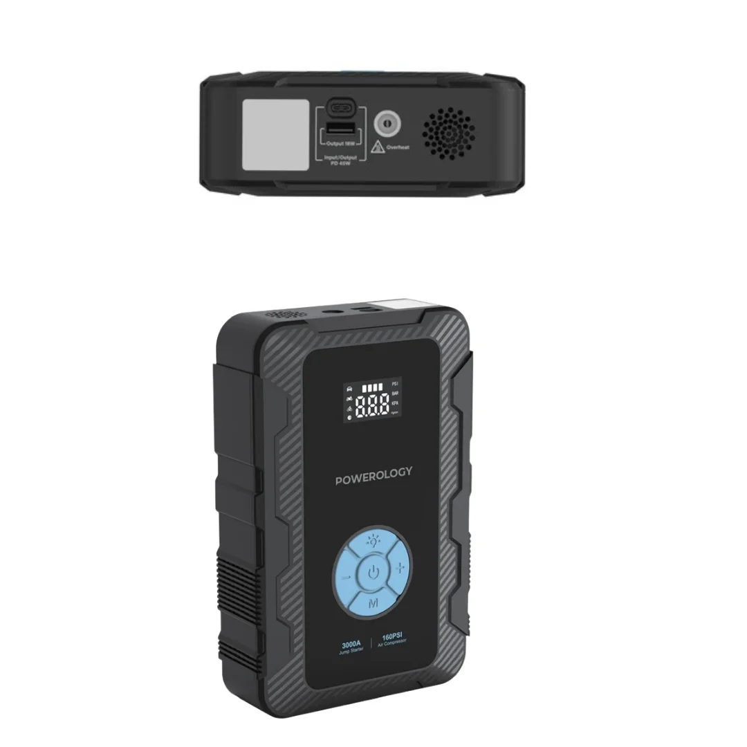پاورولوژی مدل PPBCHA43 یک دستگاه چندکاره و قدرتمند است که سه عملکرد اصلی را در خود جای داده است: پاوربانک پرظرفیت، جامپاستارتر خودرو، و پمپ باد قابلحمل. این ترکیب هوشمند باعث شده دستگاه، ابزاری ضروری برای رانندگان و مسافران باشد تا در شرایط اضطراری بتوانند خودرو را روشن کنند، لاستیک را باد بزنند یا دستگاههای الکترونیکی خود را شارژ نمایند.