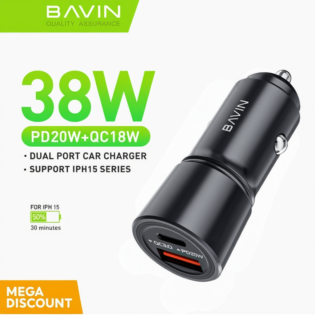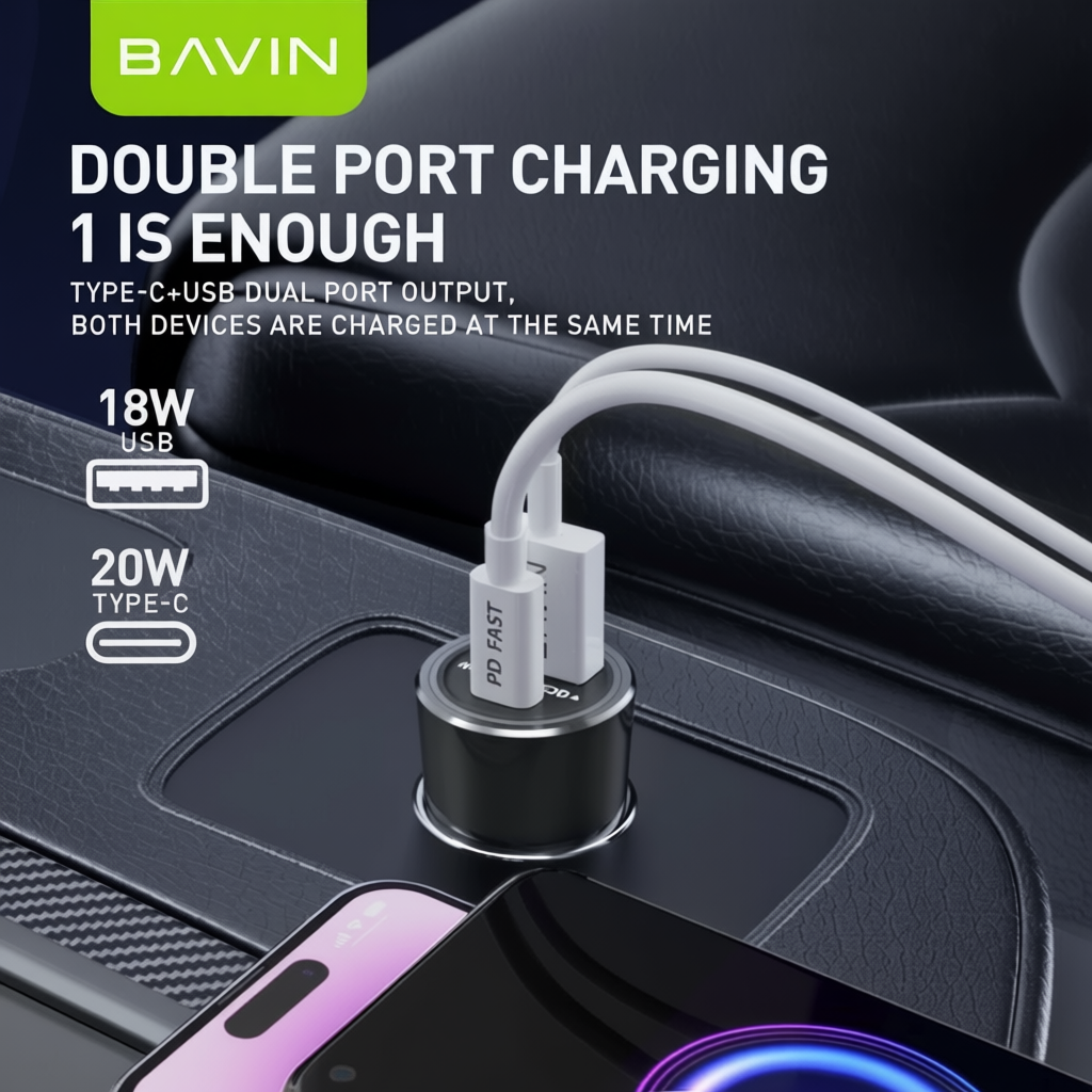 BAVIN PC920 38W Dual-Port Car Charger Fast Charging