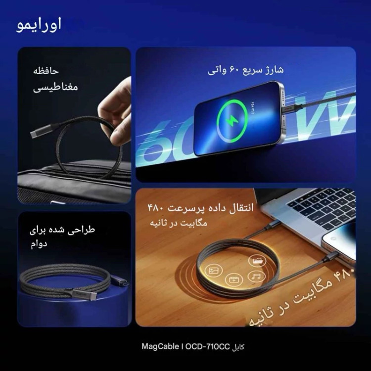 کابل دو سر تایپسی مگنتی اورایمو یک انتخاب هوشمند برای کاربرانی است که به دنبال سرعت، دوام و سهولت استفاده هستند. طراحی مغناطیسی باعث میشود اتصال راحتتری داشته باشید، روکش مقاوم دوام طولانی تضمین میکند، و تراشه هوشمند امنیت دستگاه را بالا میبرد.
