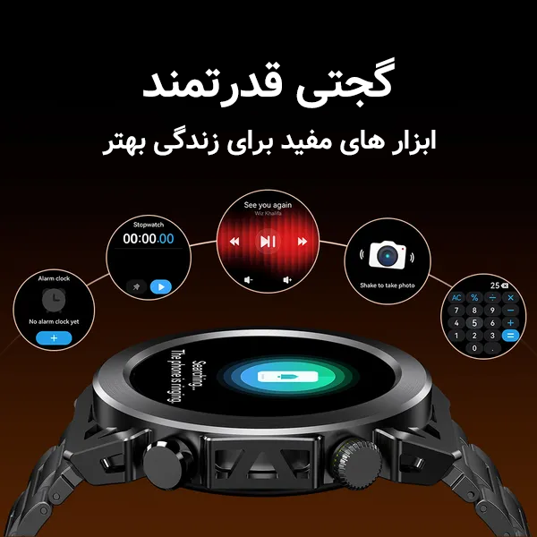 سایر امکانات: کنترل موسیقی، کنترل شاتر دوربین، اعلان تماس و پیام، تایمر، آلارم، پیشبینی وضعیت آبوهوا، گامشمار، محاسبه کالری