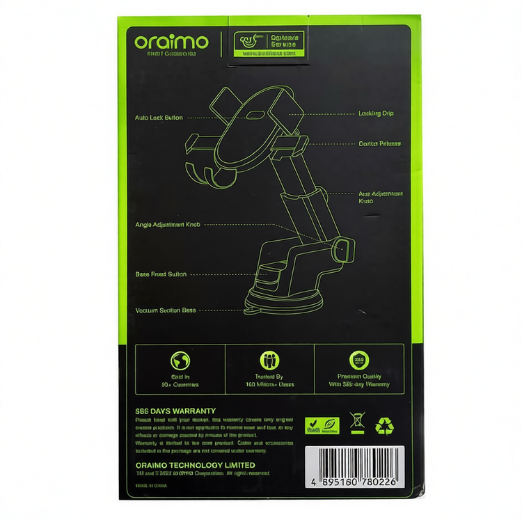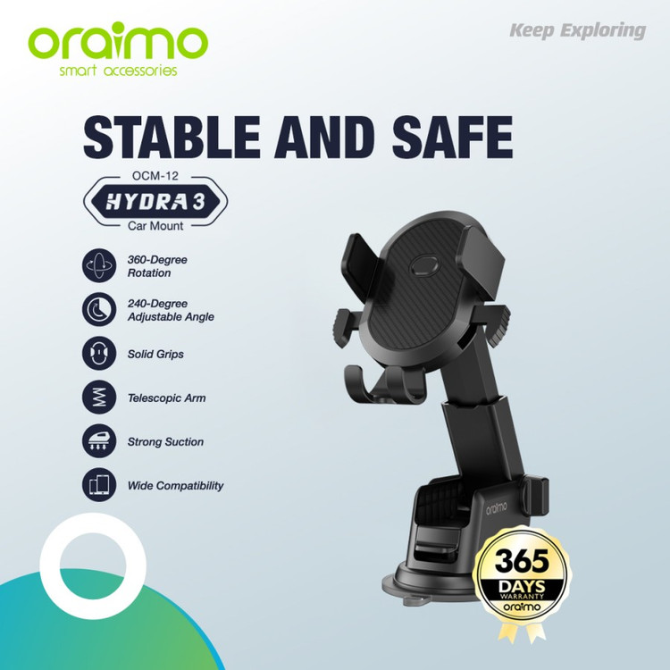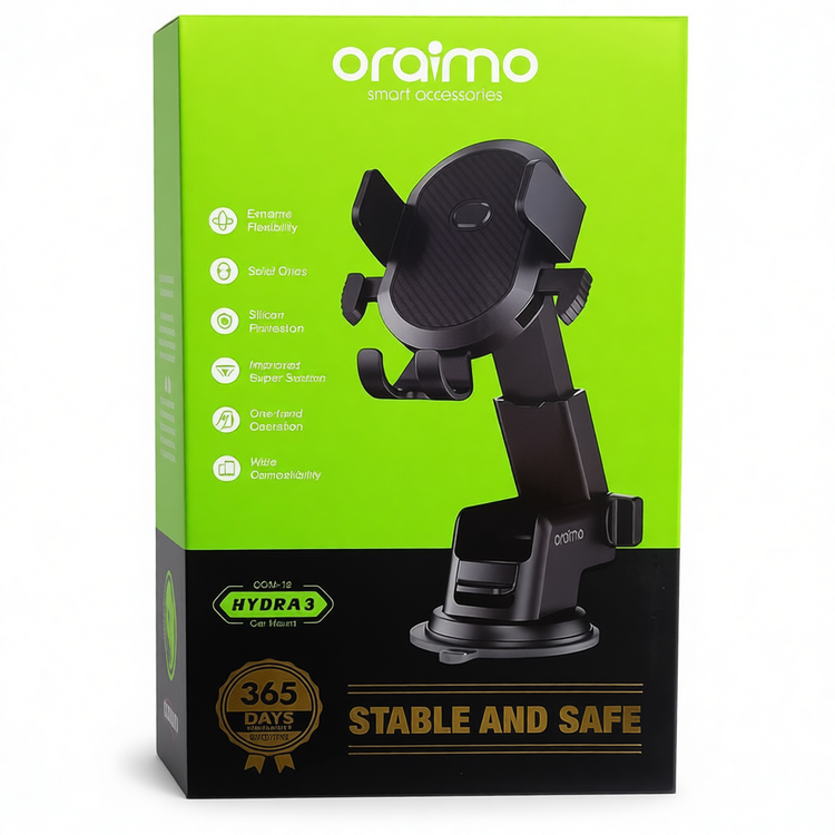 Oraimo Hydra 3 Car Phone Holder – Adjustable 360° Rotation & Strong Suction Mount for Smartphones