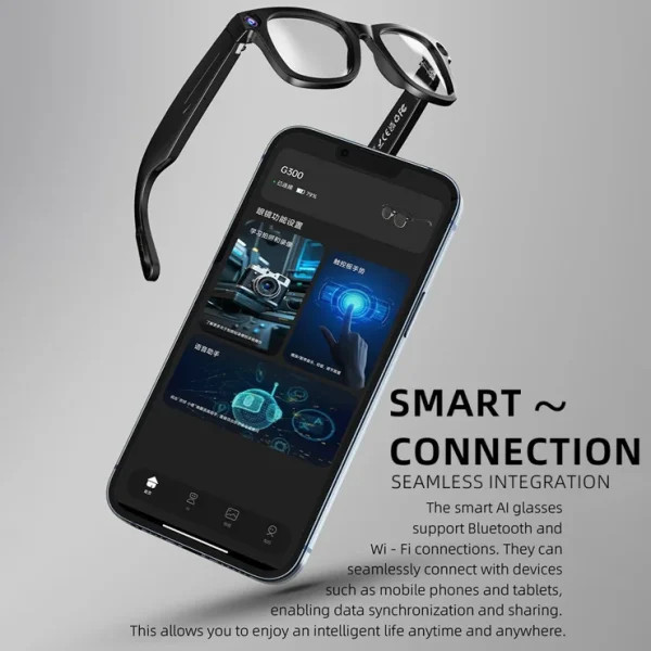 Smart Glass G300L در نگاه اول با طراحی ارگونومیک و سبک، توجه کاربران را جلب میکند. وزن سبک (حدود 38 گرم) و جنس فریم مقاوم از TR90 همراه با لولاهای استیل ضد زنگ، استفاده طولانی مدت را راحت میکند. این عینک برای افرادی که دنبال ترکیب مد و فناوری هستند، مناسب است.
