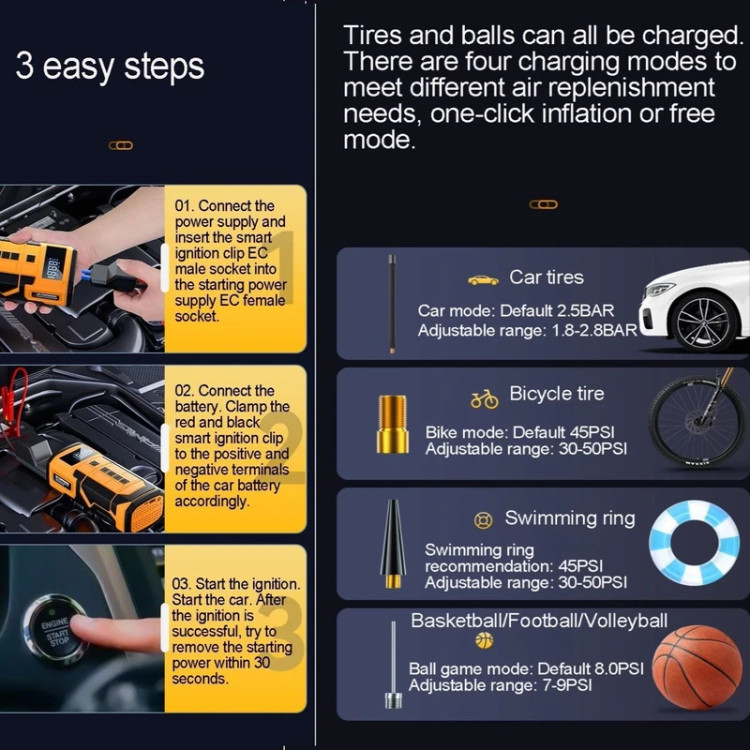نام محصول: پمپ هوای شارژی/دستگاه برق همه کاره استارت اضطراری
