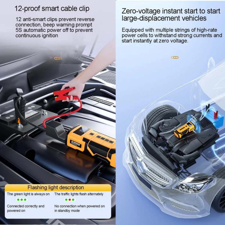 2. عملکرد قدرتمند راه اندازی اضطراری: با استفاده از یک باتری با ظرفیت بالا، می توان خودرو را تا 20 بار با یک بار شارژ روشن کرد که برای مواقع اضطراری بسیار مناسب است.