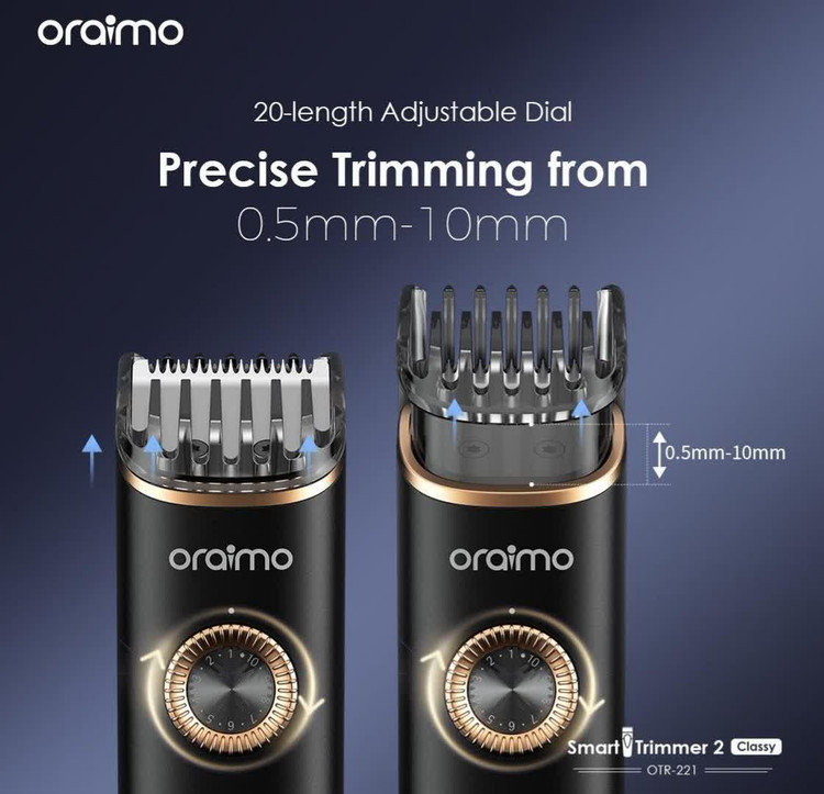 Oraimo Smart Trimmer 2 Classy TR221 یک انتخاب شایسته برای کسانی است که به ترکیب دقت، زیبایی و کارایی اهمیت میدهند. با تیغههای دقیق، طراحی مدرن، باتری بادوام، قابلیت شستشو، و امکانات هوشمند، این دستگاه بهراحتی میتواند جای خود را در روتین زیبایی و بهداشت شخصی شما باز کند.