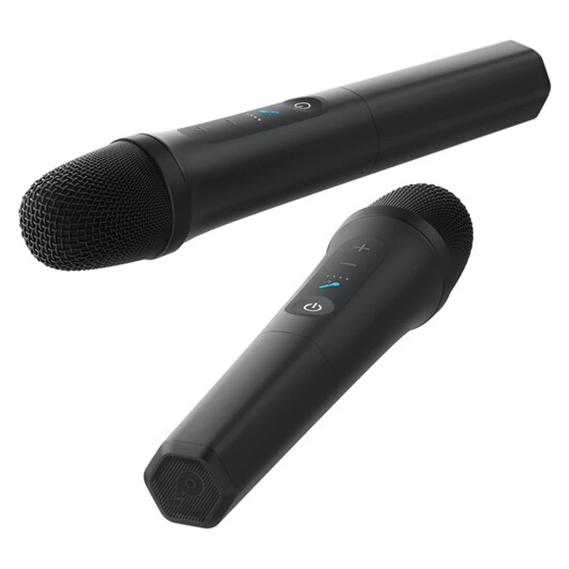 دو میکروفون بیسیم همراه با اسپیکر ارائه میشود
