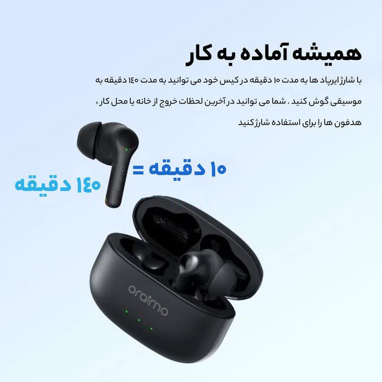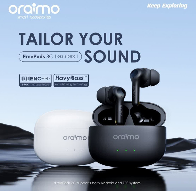 هندزفری مدل Oraimo FreePods 3C (مدل OEB‑E104DC) نسل جدید ایربادهای بیسیم از برند اورایمو است که طراحی زیبا، عملکرد پایدار و ویژگیهای کاربردی را در بازه قیمتی اقتصادی ارائه میدهد. بررسی منابع رسمی نشان میدهد این محصول گزینهای مناسب برای موسیقیدوستان و کاربران روزمره است.