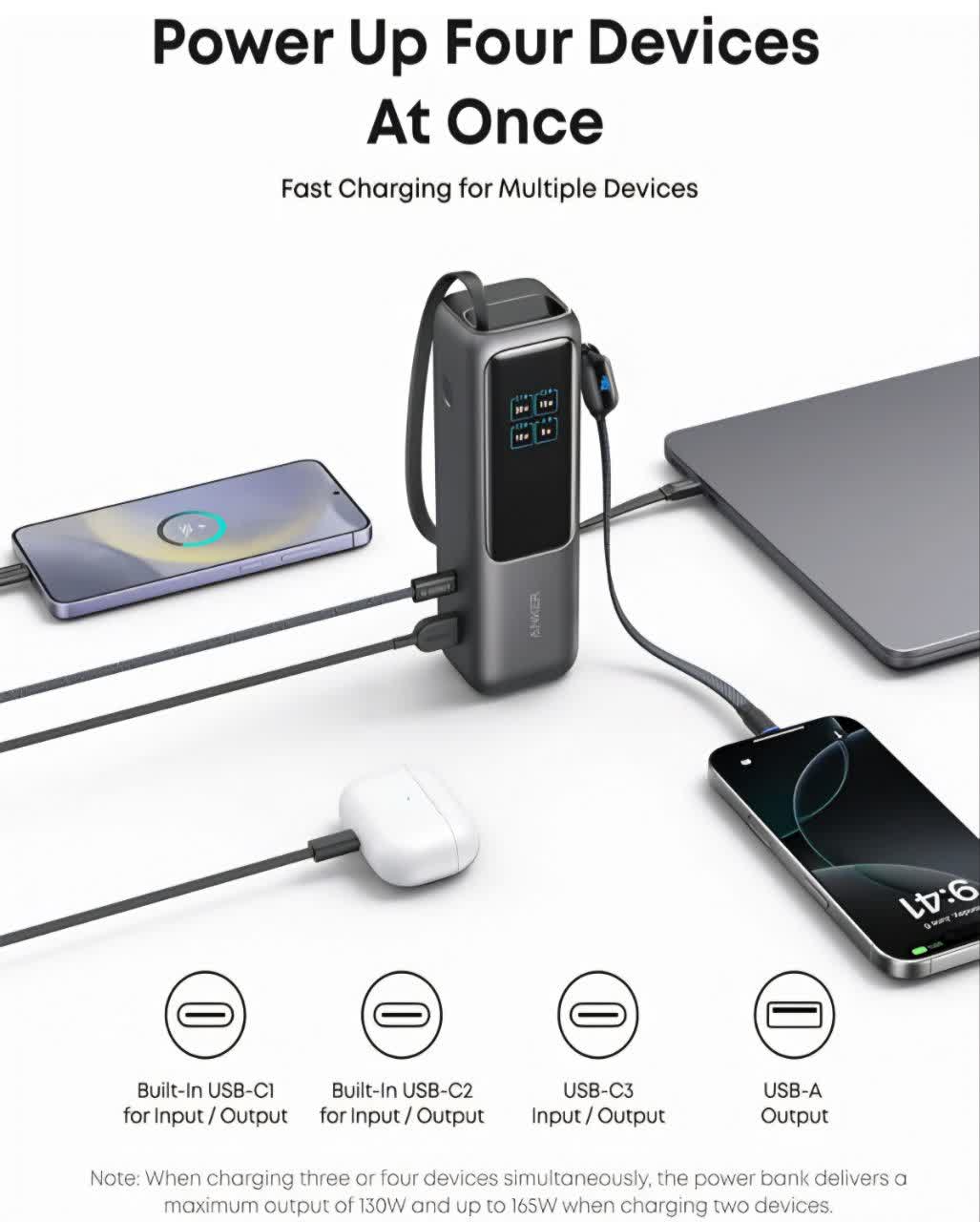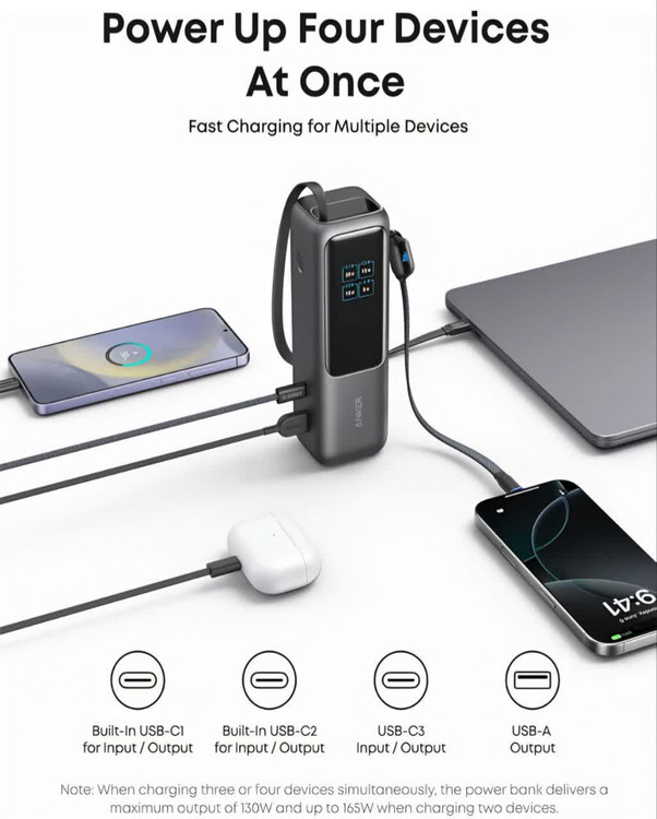 بیشتر پاوربانکها نهایتاً 30 یا 65 وات خروجی دارند؛ اما این مدل با توان خروجی ترکیبی 165 وات میتواند: