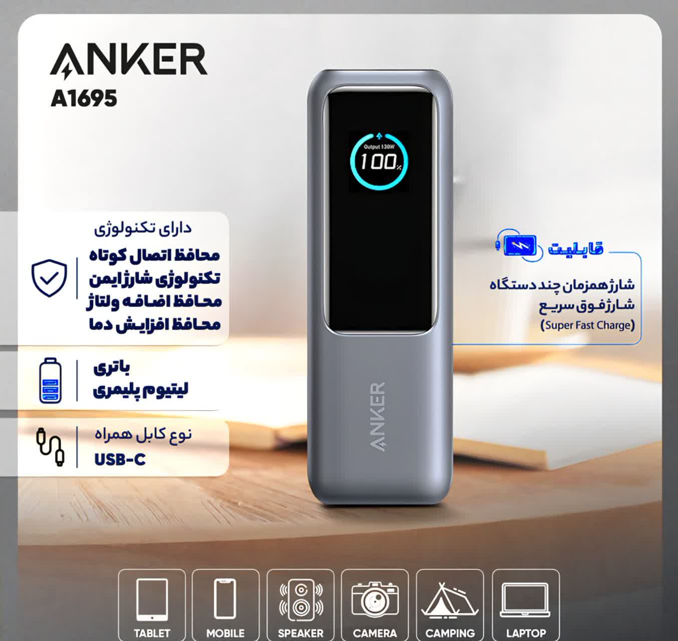 پاوربانک Anker Zolo PowerBank 25K 165W (A1695) یک شارژر همراه معمولی نیست؛ این محصول در عمل یک منبع انرژی قابلحمل سطح لپتاپ است که برای کاربرانی طراحی شده که همزمان چند دستگاه قدرتمند دارند و به شارژ سریع، پایدار و ایمن نیاز دارند. انکر در این مدل، نهایت توان مهندسی خود را به کار گرفته تا یک پاوربانک «همهچیزتمام» بسازد.
