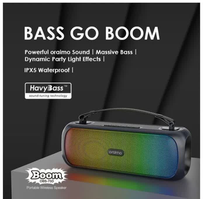 صدای قدرتمند با فناوری HavyBass یکی از نقاط قوت اصلی این دستگاه، صدای پرقدرت و عمیق آن است. Oraimo Boom مجهز به دو درایور 60 میلیمتری با توان خروجی واقعی 30 وات بوده که به لطف فناوری انحصاری HavyBass صدایی شفاف، با بیس عمیق و بدون اعوجاج حتی در ولوم بالا تولید میکند.