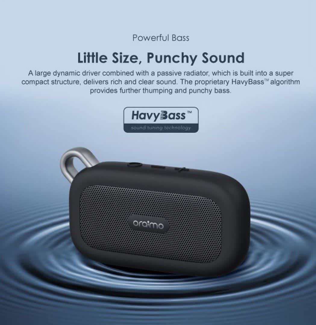 یکی از مهمترین ویژگیهای Oraimo Palm، کیفیت صدای فوقالعاده آن در عین کوچکیاش است. این اسپیکر با بهرهگیری از یک درایور دینامیک قدرتمند و رادیاتور پسیو داخلی، صدایی عمیق، واضح و با حجم بالا تولید میکند. فناوری انحصاری HavyBass™ نیز تجربهای فراموشنشدنی از باس سنگین و غنی به کاربر ارائه میدهد، بهخصوص در سبکهایی مانند هیپهاپ، EDM یا موسیقیهای سینمایی.