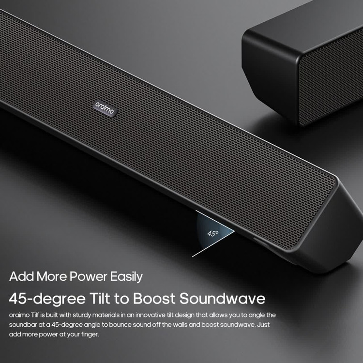 ویژگیهای برجسته ساندبار Oraimo Tilt Bar 1. صدای فراگیر و بیس قدرتمند با وجود ابعاد جمعوجور، صدای استریو قوی و بیس عمیق را تجربه خواهید کرد. درایورهای دوگانه با طراحی دقیق، وضوح صدای بالا در فرکانسهای مختلف را تضمین میکنند.