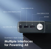 دارای سه خروجی همزمان (USB‑C و دو USB‑A)، این پاوربانک امکان شارژ همزمان چند دستگاه را فراهم و به شما آرامش میدهد. همچنین، چراغ LED داخلی با توان 100 لومن و برد تا 200 فوت، برای مواقع تاریک بسیار کاربردی است.
