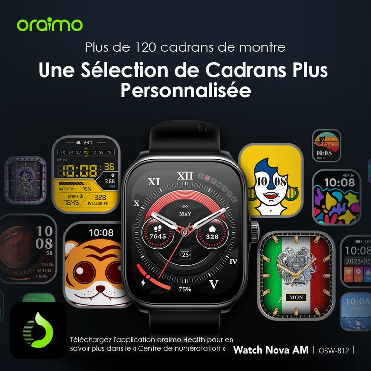 واچفیسهای قابل شخصیسازی بیش از 120 واچفیس از طریق اپ Oraimo Health
