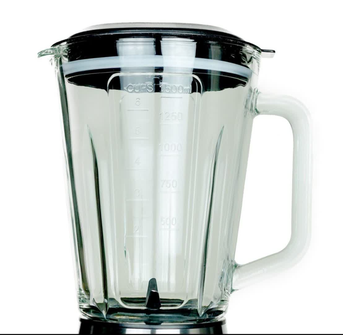 پارچ شیشهای ۱.۵ لیتری این دستگاه از جنس شیشه حرارتدیده و مقاوم در برابر ضربه ساخته شده و کاملاً بهداشتی است. این پارچ قابلیت تحمل نوشیدنیهای سرد و گرم را دارد و در برابر خط و خش نیز مقاومت بالایی دارد. در کنار این پارچ، یک آسیاب مجزا نیز همراه دستگاه عرضه میشود که برای آسیاب انواع دانه، ادویهجات، قهوه و آجیل بسیار کارآمد است.