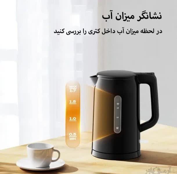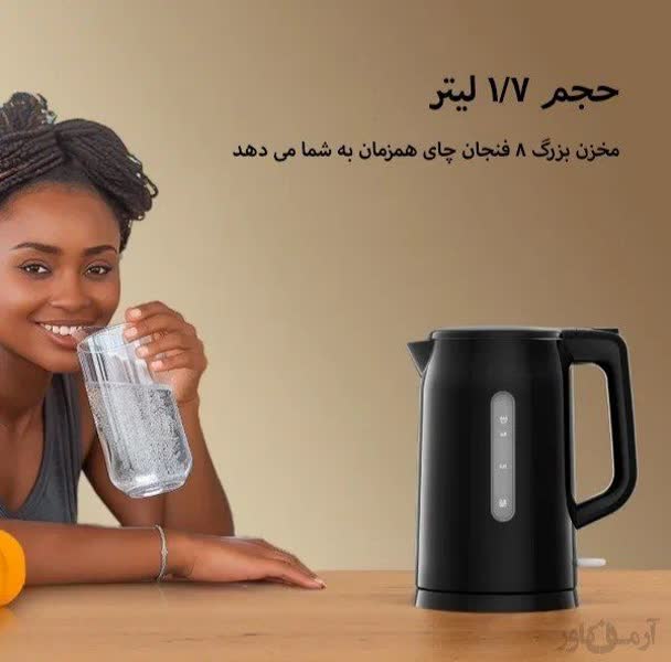 کتری دارای ظرفیت ۱.۷ لیتر است که برای استفاده خانوادگی، مهمانیهای کوچک یا محیطهای اداری کاملاً مناسب است. این حجم میتواند بهراحتی چند لیوان نوشیدنی را همزمان آماده کند.