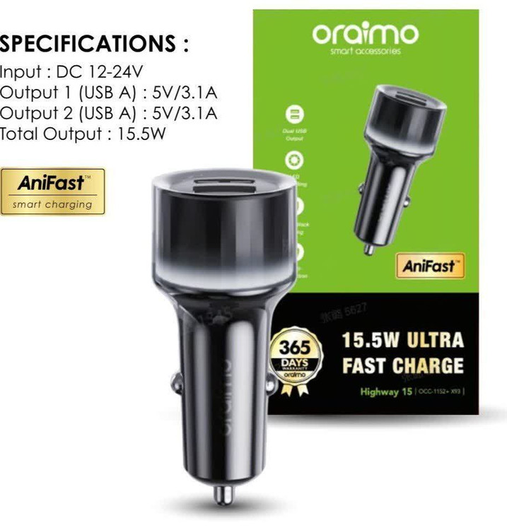 شارژر فندکی Highway 15 اورایمو یک شارژر حرفهای و ایمن برای خودرو است که بهطور ویژه برای افرادی طراحی شده که همیشه در حال حرکت هستند و نیاز دارند در کوتاهترین زمان، دستگاههای الکترونیکی خود را شارژ کنند.