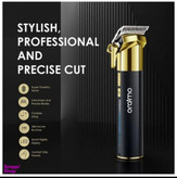 بدنه این ماشین اصلاح از پلاستیک ABS مقاوم ساخته شده و دارای طراحی ارگونومیک است که استفاده طولانیمدت را بدون خستگی دست ممکن میکند. وزن دستگاه حدود 250 گرم است که هم سبکی مناسبی دارد و هم حس کیفیت و استحکام را منتقل میکند. رنگبندی مشکی با جزئیات طلایی، جلوهای لوکس و مدرن به دستگاه داده است.