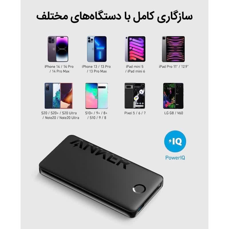 حداکثر توان خروجی دستگاه 12 وات است که برای شارژ استاندارد گوشیهای هوشمند، هندزفری و تبلتهای کوچک کافی است. این پاوربانک از فناوری PowerIQ انکر بهره میبرد که جریان خروجی را بهصورت هوشمند متناسب با نیاز هر دستگاه تنظیم میکند تا سریعترین و ایمنترین شارژ ممکن انجام شود.
